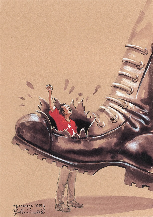 “Sanatçılar olarak ne yapabiliriz, bunlara nasıl çare olabiliriz diye kara kara düşünüyoruz” diyen sanatçı acı mizah kullanarak illüstrasyon yapacağını söyledi. Çizimleri internet üzerinden tüm dünyayla paylaşacağını kaydeden sanatçı, “İnsanların ne kadar kör olabileceklerini gördük. Siyasetin dışında büyük bir sosyolojik problemin olduğunu onun üzerinden insanlık dışı bir politika yürütüldüğünü düşünüyoruz. Sergiler düzenleriz, kitaplar yaparız. İnsanlığın sınırı yoktur. Halep neyse Afganistan odur. Halep tahliye ediliyor fakat ardından Musul var. İnsanoğlu neredeyse orada sefayla yaşamalı. Bunu nasıl beceremiyoruz hala daha bilmiyorum” şeklinde konuştu.